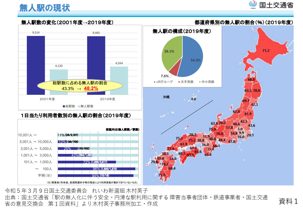 駅の無人化が進む中、国交省は、利用者の安全性の確保や、転落事故が起こる現状に対しての危険性や、駅員などの支援がなければ駅を利用できない利用者の方の実態把握をどこまで行っているのでしょうか、お答えください。