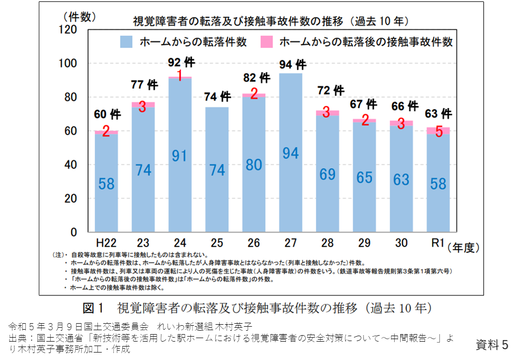 やっぱり私のように重度の障害になるとどうしても人の手の支援がなければ電車に乗ることはできませんから、やはりその悲惨な事故を防ぐためにも、そしてその人的支援を必要な方のためにも是非検討の方をお願いしたい、あるいは調査を把握していただきたいというふうに思います。