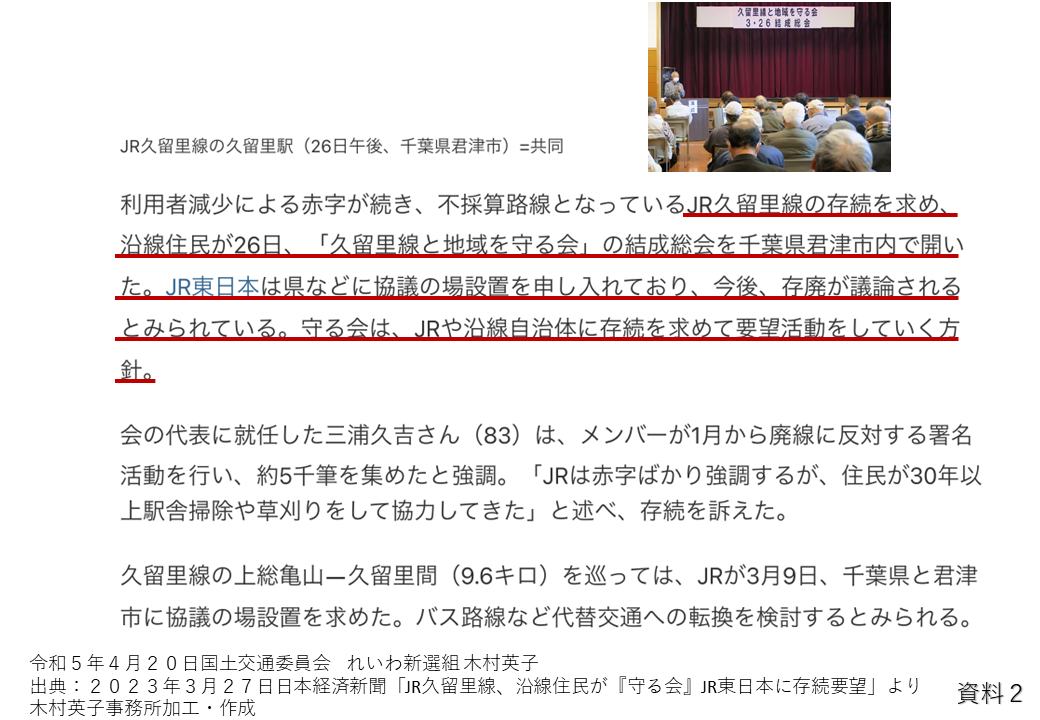 例えば、地方などの過疎化や人口減少によって鉄道会社が路線を維持できない場合に鉄道の存廃を決める再構築協議会を設けるということですが、協議の行方によってはそこに住んでいる住民の生活に重大な影響を及ぼしかねません。