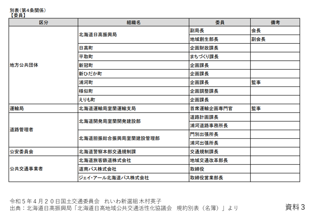 この名簿には、地方自治体や鉄道事業者、バス事業者などの構成員などが書かれています。しかし、障害者や高齢者などの参加は記載されていないんですね。これでは鉄道を利用している地域住民の意見というものが反映されているというふうには思わないんです。特に障害者や高齢者の記載がないということは、考えられていないというふうに私は思います。
