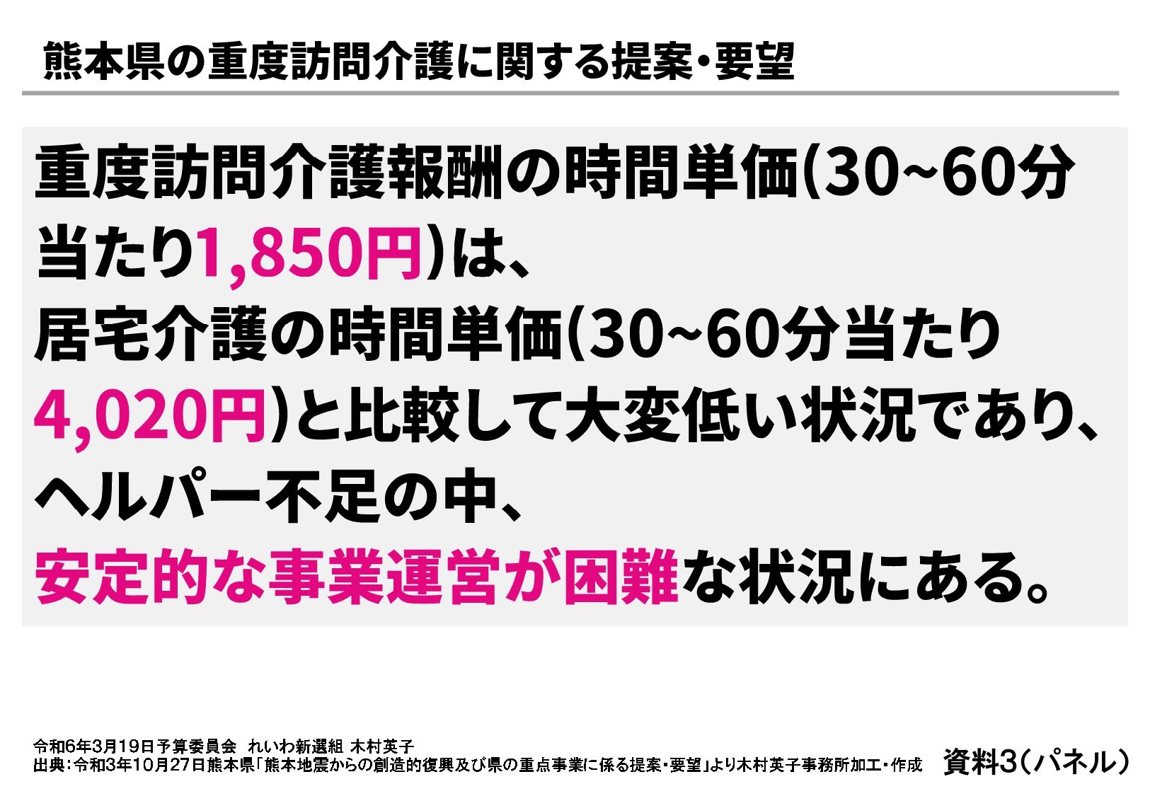 資料3では、東京都や熊本県など幾つかの自治体からも重度訪問介護の報酬単価の見直しの要請が出されているところです。